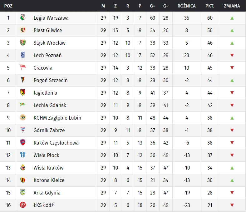 Liga Polska Ekstraklasa Wyniki Tabela